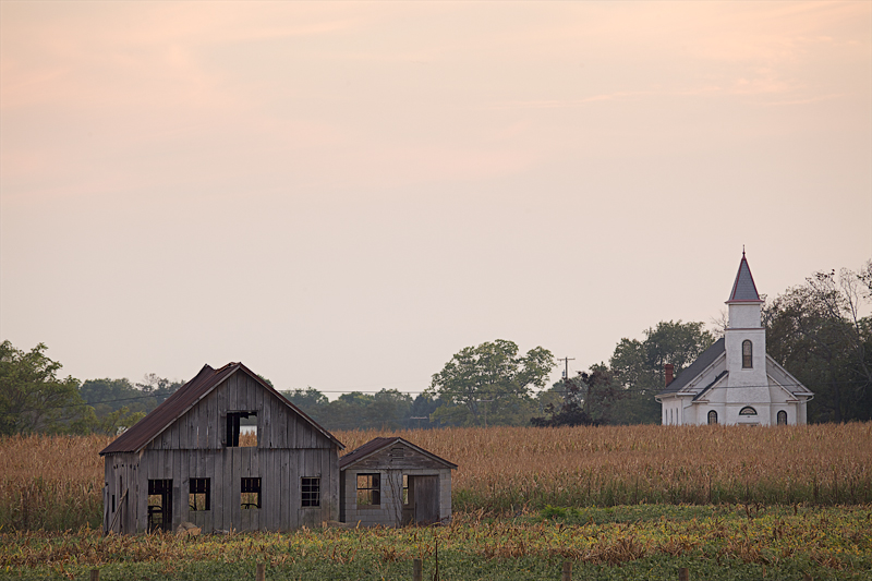 Good light at dusk. It looks like dawn but isn’t. I like the softness of the light this time of day. The ground is illuminated mostly by the brighter upper atmosphere. The light is traveling through so much atmosphere that relatively more of the shorter wavelengths (blues) are being filtered, giving the nice rose glow. I wonder if Robert Johnson’s crossroad looked anything like this… probably not so rosey.